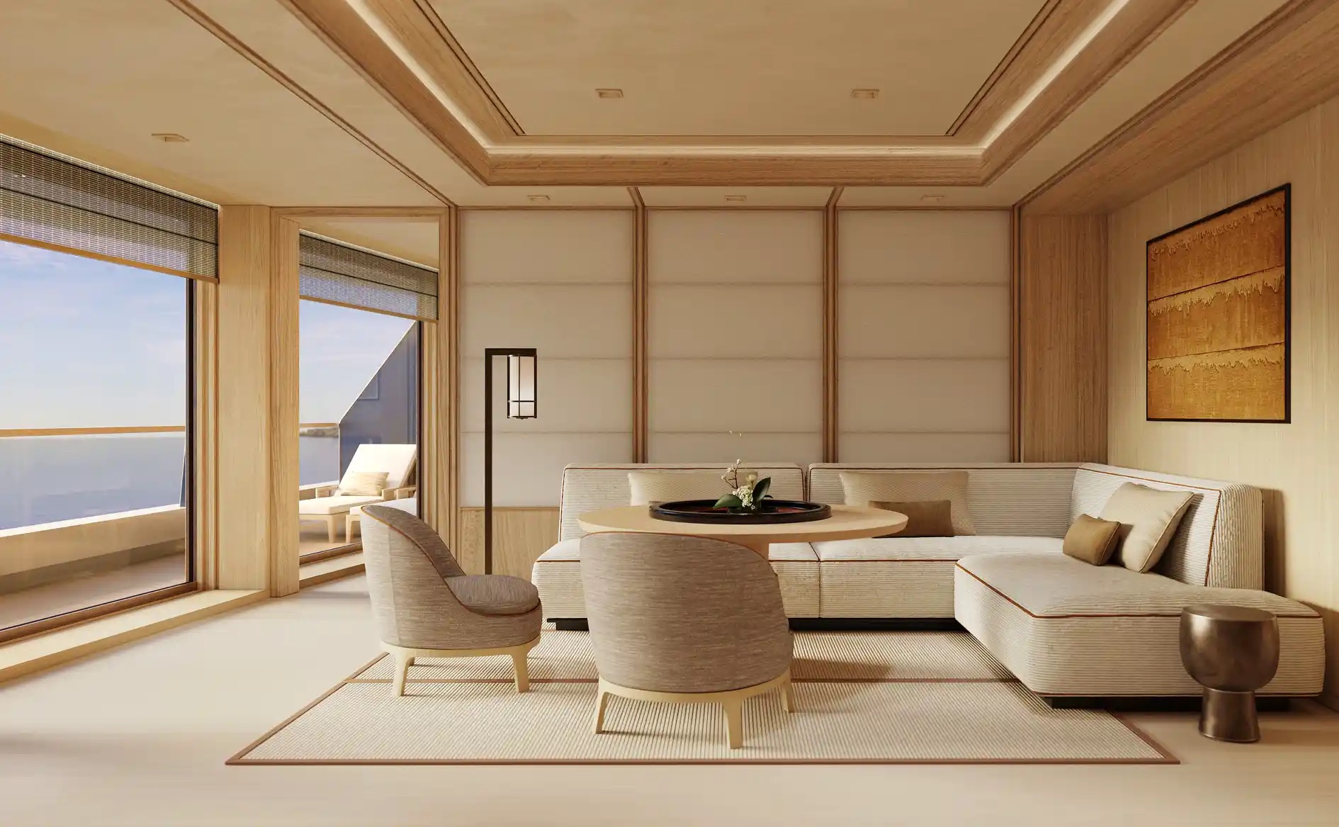 Дебют запланирован на 2027 год. Amangati — название происходит от санскритского «мирное движение» — будет курсировать по Средиземному морю с уверенным спокойствием. Яхта большая, но при этом не кажется громоздкой. На борту всего 47 сьютов и не более 94 гостей. Атмосфера напоминает уединённый ретрит, а не классический круиз.