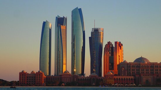 Комплекс башен Этихад, состоящий из пяти зданий, расположившихся вдоль набережной Корниш Роуд, является символом современной архитектуры столицы ОАЭ. Эти башни получили широкую популярность благодаря съемкам в фильме франшизы «Форсаж». Разработанный известным австралийским архитектурным бюро DBI Design, проект обошелся инвесторам в сумму около четырех миллиардов долларов. Один из небоскребов используется как роскошный пятизвездочный отель, второй занят престижным бизнес-центром площадью 46 тысяч квадратных метров, остальные три отведены под жилые квартиры.