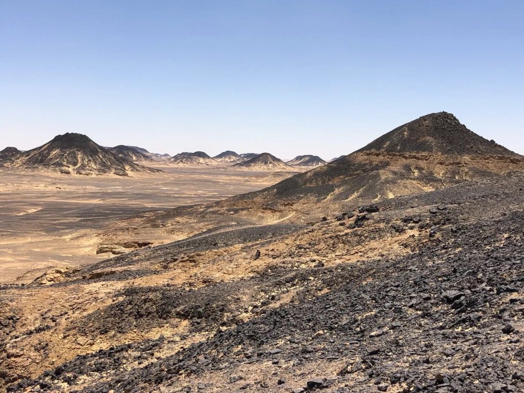 Контрасты Черной пустыни объясняются вулканической активностью древнего вулкана Туфа, произошедшего несколько миллионов лет назад. Вулкан выбросил огромное количество лавовых потоков, превратившись впоследствии в черные потоки застывшей магмы, образующие сегодня чёрные вулканические гряды и расколотые пласты, выделяющиеся на фоне желтоватого песка окружающей пустыни.