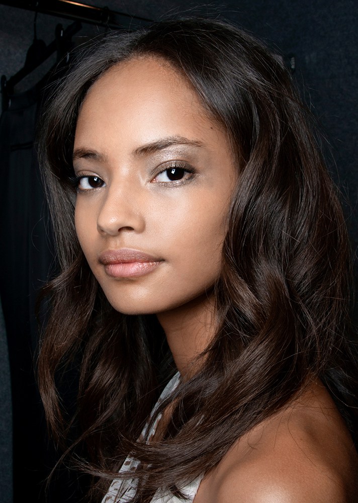 Крупные жесткие волны волос в виде вьющихся прядей — модная веречная прическа.