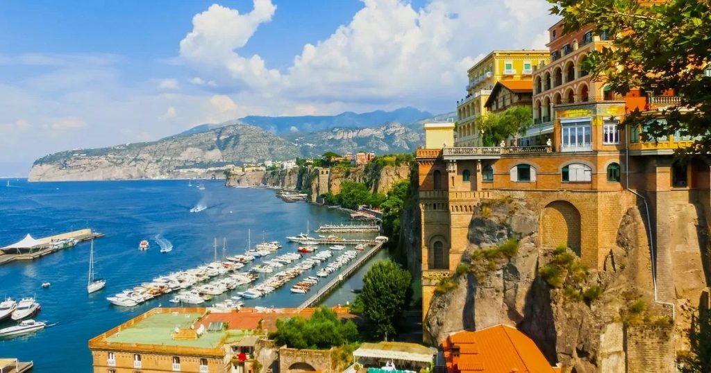 Курортный городок, утопающий в садах и цветах, лежит в 50-ти километрах от Неаполя. Этот очаровательный уголок побережья Средиземного моря притягивал многие известные фигуры прошлого, такие как Гёте, Байрон, Толстой и Горький. Считается, что именно в Сорренто немецкий композитор Мендельсон написал свой знаменитый свадебный марш.