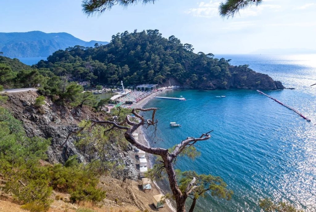 Пляж Голубая лагуна в поселке Олюдениз покорил сердца множества туристов. Это чудесное место, окружённое тенистыми соснами, известно изумрудно-голубой водной гладью, аккуратной полосой мелкой гальки и удобной глубиной моря, подходящей для плавания с детьми. Лагуна признана одним из лучших пунктов назначения для спокойного семейного отдыха, наслаждения красотой природы и приятной атмосферы на берегу моря.