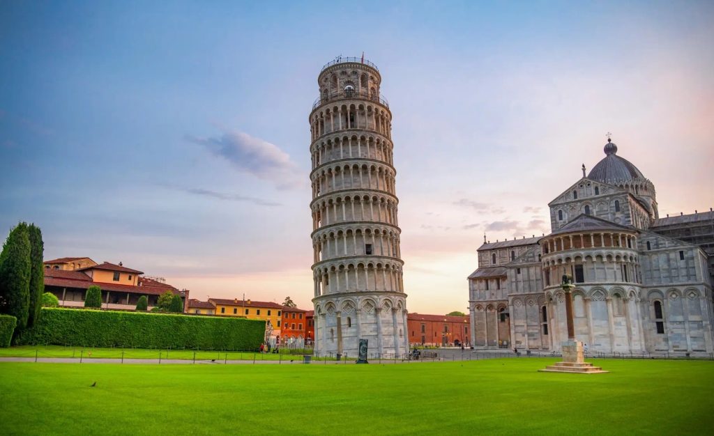 Хотя Пизу чаще всего ассоциируют с одноименой «падающей» башней, она обладает множеством других достопримечательностей. Самым важным ансамблем города является Пьяцца дей Мираколи («Площадь чудес»), охраняемая ЮНЕСКО. Комплекс состоит из собора Санта-Мария Ассунта, известного своими внушительными бронзовыми дверьми и великолепным мраморным оформлением, и баптистерия, в котором особым образом устроено звучание голосов, создающее эффект длительного эха.