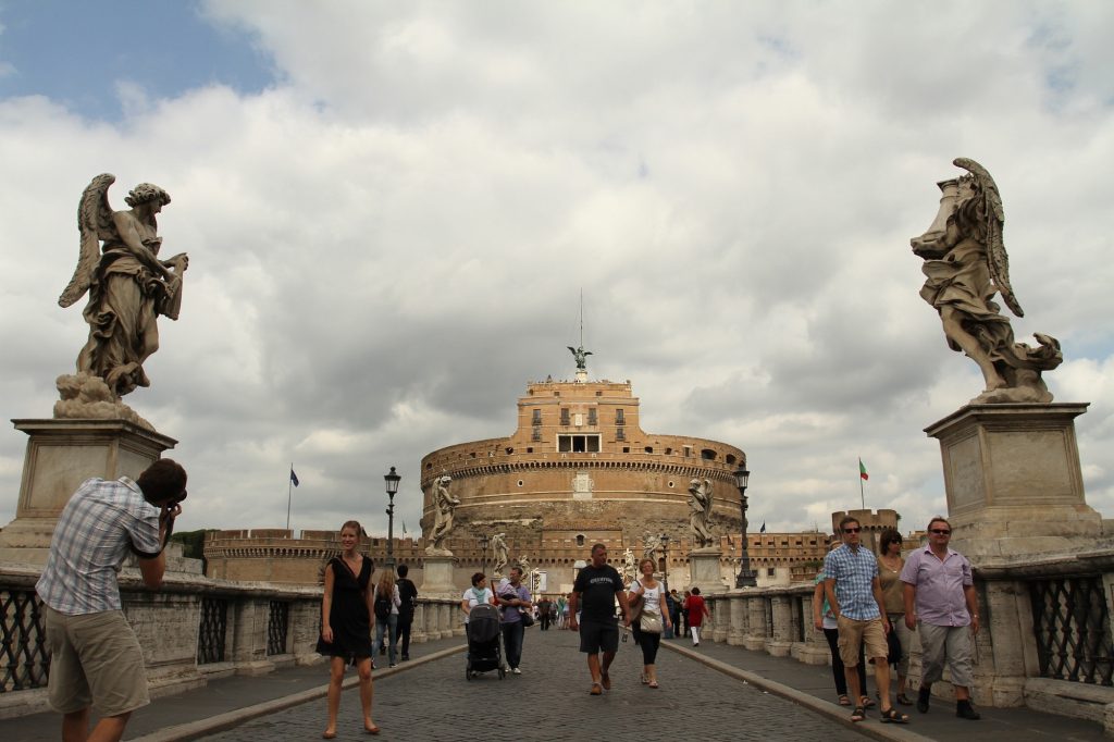 Расположенный на берегу реки Тибр, этот необычный цилиндрический форт был возведен в начале II века императором Адрианом в качестве мавзолея для своего семейства. Первоначально замок имел прямоугольное основание, покрытое белым мрамором, с верхней частью в форме насыпи, на вершине которой стояла скульптурная группа с изображением солнечного божества Гелиоса.