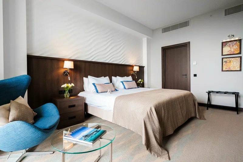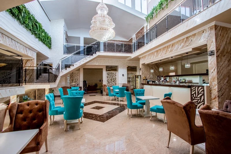 Инфраструктура отеля включает крытый и открытый бассейны, банный комплекс (римская баня, хамам, сауна), фитнес-зал, конференц-залы для мероприятий разного масштаба, а также детский клуб и игровую площадку. Для гостей доступны услуги SPA-центра, косметологические и оздоровительные процедуры, организация трансфера, экскурсий и активного отдыха. Отель подходит как для семейного отпуска, так и для деловых поездок, а также предлагает возможности для реабилитации и профилактики здоровья. Собственная парковка, бесплатный Wi-Fi и внимательный сервис делают отдых максимально комфортным.
