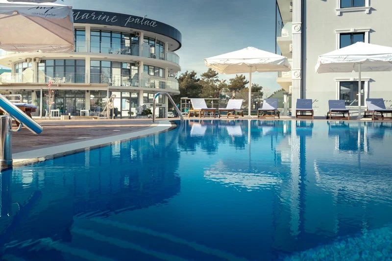 Marine Palace — это современный трёхзвёздочный отель в северной части Геленджика, расположенный всего в 650 метрах от моря и в 10 минутах ходьбы от набережной. Отель занимает закрытую, ухоженную территорию, что создаёт атмосферу уюта и безопасности. Здесь гости могут воспользоваться подогреваемым бассейном с баром и террасой для отдыха, а для детей предусмотрен отдельный мелководный бассейн и игровая площадка. В распоряжении отдыхающих — ресторан авторской кухни «Аквариум», где завтраки проходят по системе «шведский стол», а вечером предлагается меню a la carte. В отеле 67 номеров различных категорий: от стандартов до делюкса и студий, все с кондиционером, Wi-Fi и удобствами для комфортного проживания.