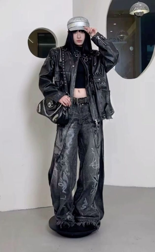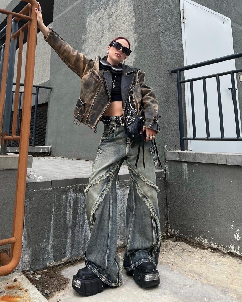 6. Тёмная романтика и андеграунд. Ещё одно направление — dark streetwear или «goth-futurism»: чёрный цвет, кожа, массивная обувь и техно-аксессуары. Этот стиль объединяет влияние рейв-культуры, панка и кибер-эстетики. Он притягателен своей мрачной выразительностью и визуальной силой, отражающей внутренние тревоги поколения.