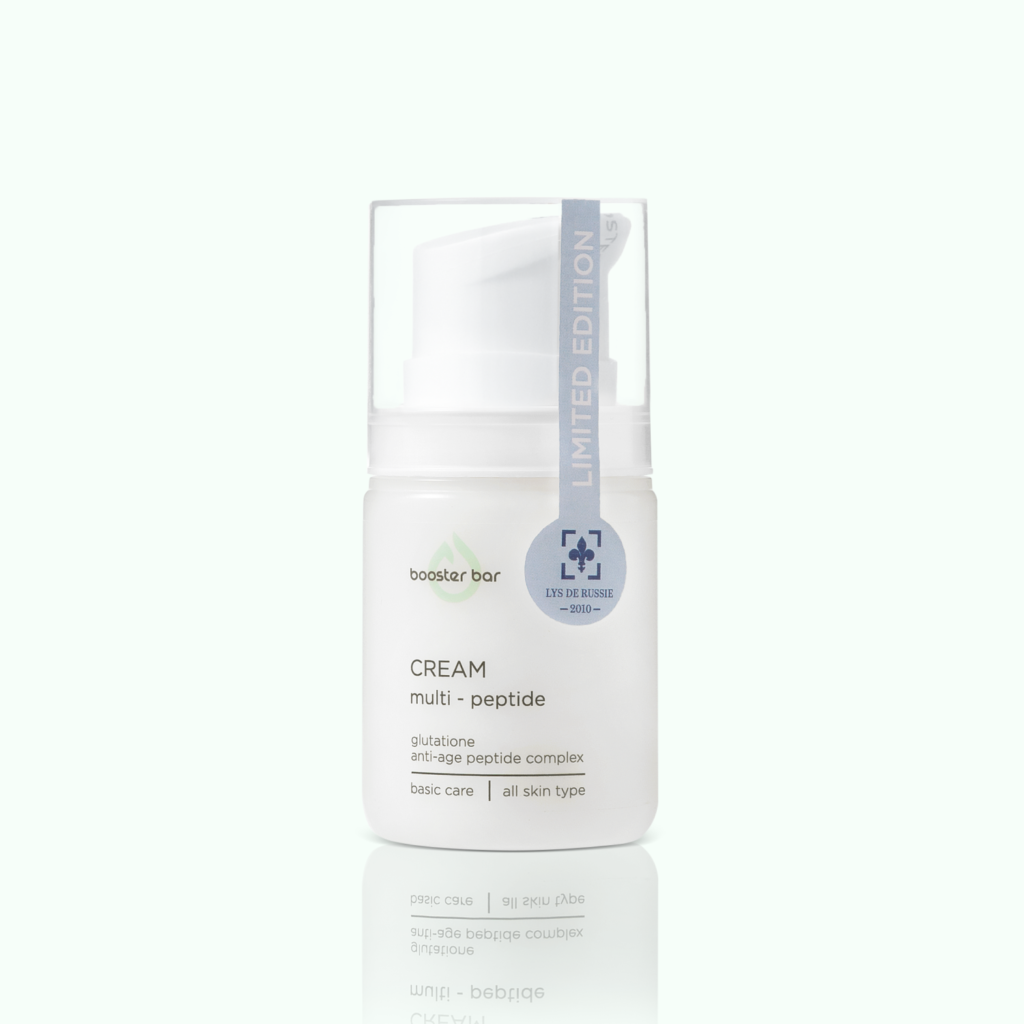 Если задача – работа с морщинами, то стоит остановить свой выбор на пептидных кремах. Крем Booster bar CREAM MULTI-PEPTIDE Крем мульти-пептид с глутатионом. Коллекция Booster Bar х Александр Васильев — содержит в себе несколько видов пептидов, в том числе и ботулоподобные.
