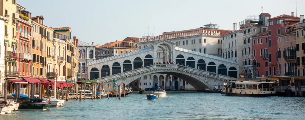 Самым знаменитым символом Венеции остается элегантный мост Риальто, пересекающий Гранд-Канал. Своё название он получил благодаря фамилии архитектора Антонио де Понте («Ponte» в переводе с итальянского значит «мост»). Сооружён мост был в 1591 году и стал первым однопролетным каменным мостом подобного масштаба в Европе. Изначально многие сомневались в прочности конструкции, считая, что она долго не продержится. Однако мост успешно пережил испытание временем и сохранился до наших дней, будучи надежно поддерживаем 12-ю тысячами деревянных свай, заложенных глубоко в дно канала.