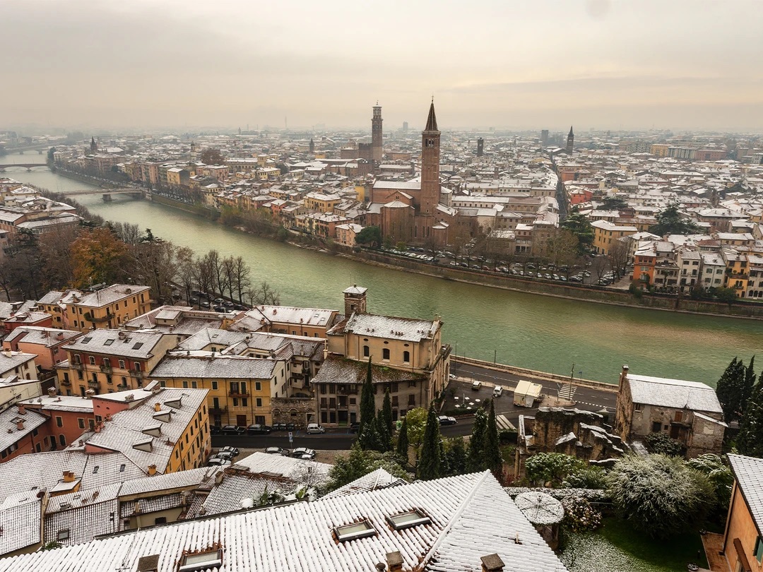 Зима в Вероне холодная: дневная температура варьируется от +3 до +7°C, ночи часто сопровождаются морозами. Нередко погода облачная, туманная, возможны осадки в виде снега.
