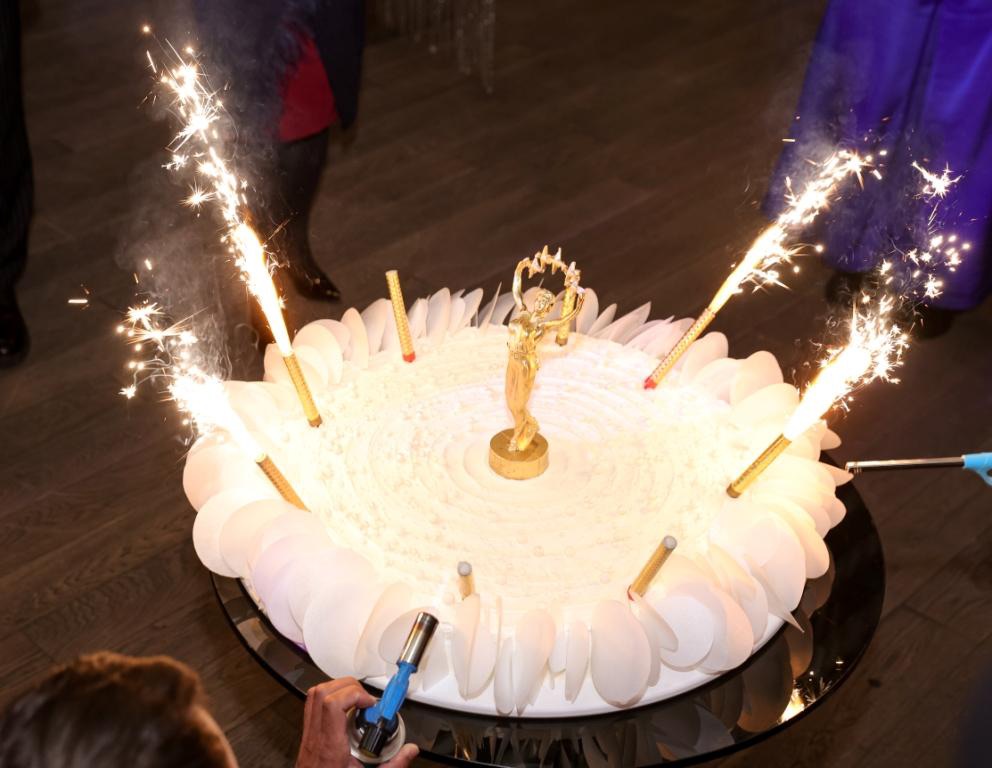 Сюрприз для гостей приготовила мастер кондитер Татьяна Гузеря на сцену вынесли большой торт со статуэткой «Премии ГРАЦИЯ», который подожгли прям на сцене.