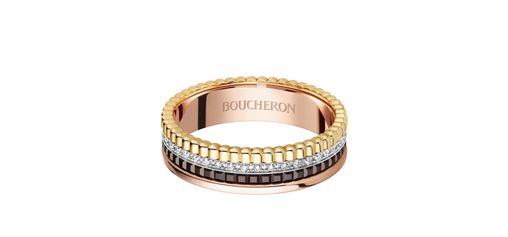 Идея миниатюрного кольца класса люкс: модель Quatre XS от Boucheron, выпущенная в 2026 году и доступная в нескольких версиях.