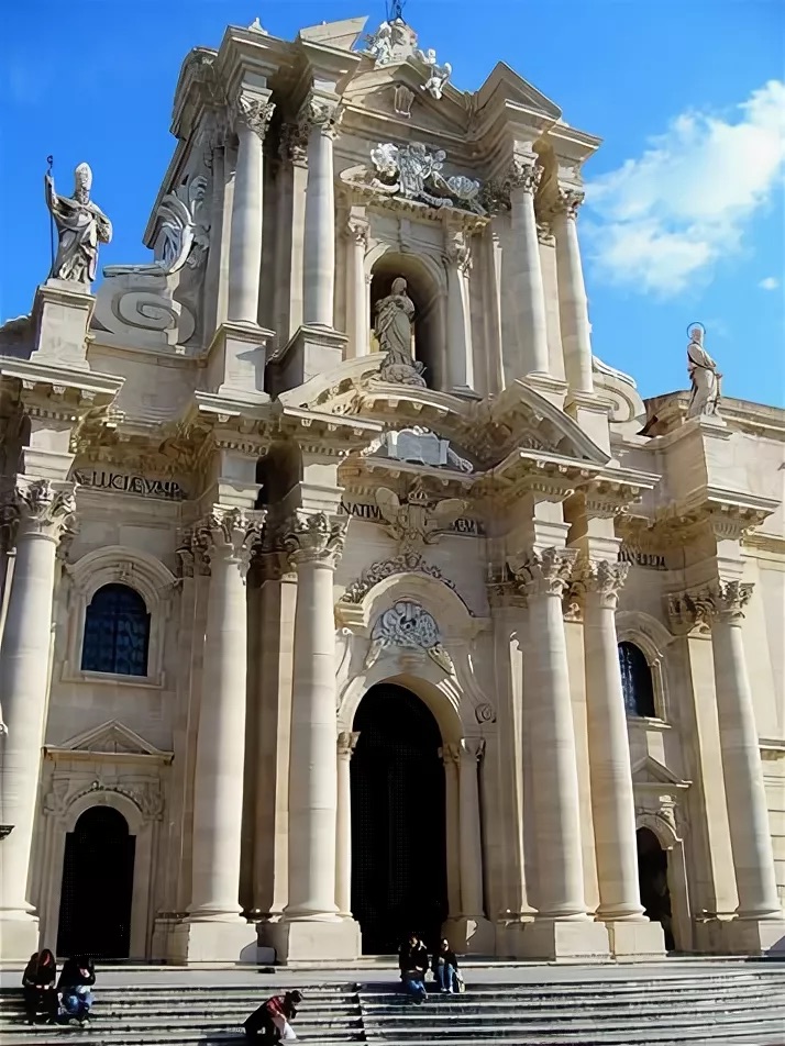 Среди религиозных памятников города выделятся Кафедральный собор Сиракуз, занесённый в список Всемирного наследия ЮНЕСКО. Изначально воздвигнутый в эпоху Древней Греции как храм Афины, позже многократно перестраивался и менял назначение, становясь сначала церковью, потом мечетью и снова католическим собором. Нынешний внешний вид здания сформировался в XVIII веке, характеризуясь стилем барокко, а остатки старых колонн напоминают о первоначальном облике храма.