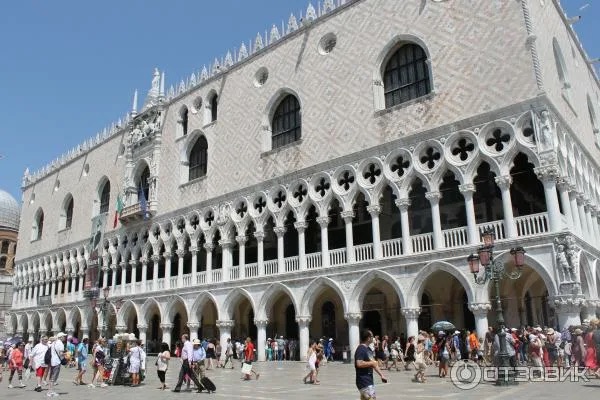 Особенность дворца дожей — необычная конструкция: массивная верхняя часть здания покоится на изящных арочных конструкциях, создавая впечатление лёгкости и воздушности. Внутри Дворца выделяется Зал Большого Совета с огромной картиной «Рай» кисти Тинторетто, поражающей размерами и детализацией сюжета.
