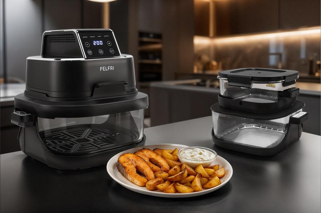 Этот аэрогриль идеально подойдет тем, кто любит готовить глазами и ценит эстетику на кухне не меньше, чем результат. Гаджет от FELFRI для тех, кто фотографирует еду, снимает сторис, любит наблюдать, как картофель золотится по краям, а сыр медленно начинает тянуться. Большая чаша подойдёт семье, а маленькая станет находкой для тех, кто живёт один. FF-AF-09 — это одна из самых необычных моделей на рынке и лучший выбор для тех, кто хочет не просто функциональный прибор, а кухонный гаджет, который вдохновляет.
