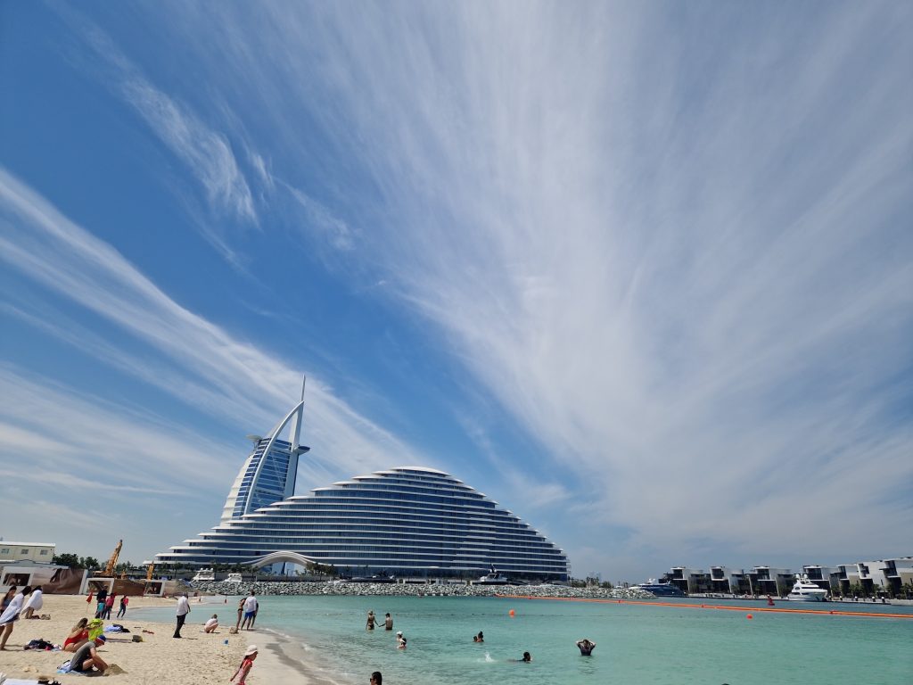 Несмотря на отсутствие удобств, исключительная чистота воды и восхитительные пейзажи компенсируют любые неудобства. Вид на знаменитые достопримечательности — Пальму Джумейру и символ Дубая Burj Al Arab — придает этому месту особый шарм.