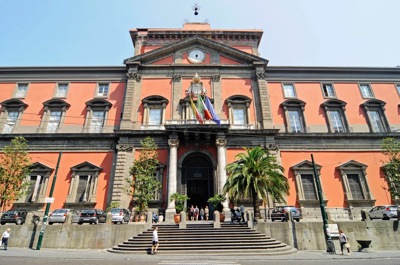 Ранее в стенах этого шестнадцатого века здания функционировал городской университет. Теперь оно стало домом для огромного собрания уникальных предметов античности, найденных преимущественно в результате раскопок древних городов, уничтоженных вулканическими выбросами Везувия. Экспозиция включает ценнейшие экспонаты, такие как отреставрированная работа самого Микеланджело — Фарнезийского быка, бронзовая голова философа Сократа, знаменитая статуя Венеры Каллипиги, принадлежащая императору Нерону, и уникальная мозаика с изображением Александра Великого, обнаруженная в Помпеях.