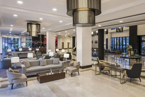 DoubleTree By Hilton Kemer 5* — это современный курортный отель, расположенный на первой береговой линии в центре Кемера, всего в 50 км от аэропорта Анталии. Отель сочетает стильный дизайн, высокий уровень сервиса и концепцию «Ultra All Inclusive». На территории площадью 18 000 м² гостей ждут просторные номера с балконом, мини-баром, сейфом, бесплатным Wi-Fi и современными ванными комнатами. Для семей доступны дуплекс-номера и люксы, а для детей работает мини-клуб Teddy & Bunny (4–12 лет) и игровая площадка. Особенностью отеля является уникальная гастрономическая концепция: пять ресторанов a’la carte (итальянская кухня, морепродукты, суши, барбекю и бедуинская кухня), передвижные фудтраки с блюдами разных стран мира, собственная кондитерская Lorien с выпечкой и десертами, а также круглосуточный бар и мороженое-бар The Ice Fridge.